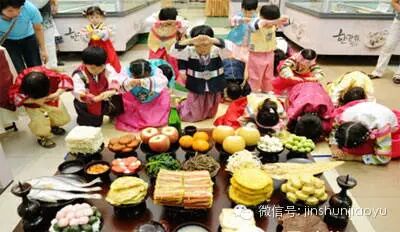 韩国中秋习俗:玩传统跷跷板游戏、欣赏羌羌水舞、品尝韩国的“月饼”——松糕,还有头号中秋食品——芋头汤。