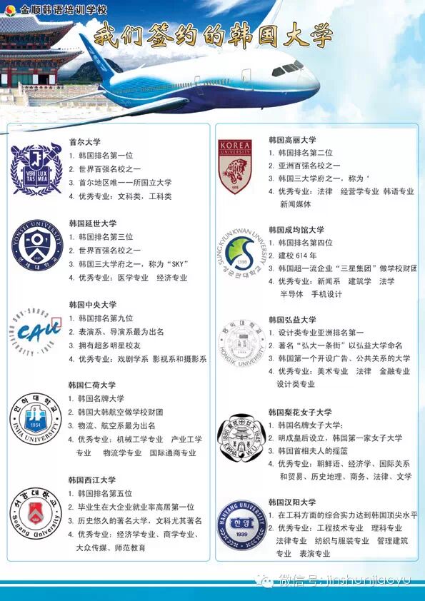 学历条件方面,学生要有高中以上或同等学历,包括职高、中专毕业,在国内接受完12年教育。目前,韩国首尔地区的绝大部分名校都要求学生提供高中毕业证,地方大学相对宽松,高中或者中专学历都可以。但国立大学很少接受中专毕业生申请。学生要提前向金顺韩语学校了解清楚。