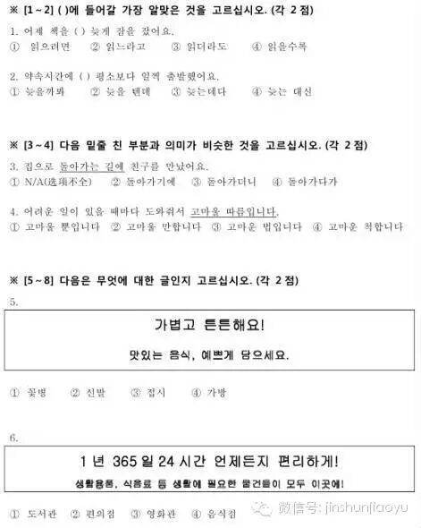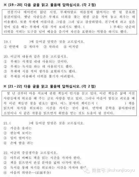 阅读的语法题还是一如既往地照顾中级考生,涉及到的语法点有-느라고(表示原因), -(으)ㄹ까봐(表示担心), -는길에, -다가(表示动作转换), -(으)ㄹ따름이다/뿐이다(表示只…,仅…)。