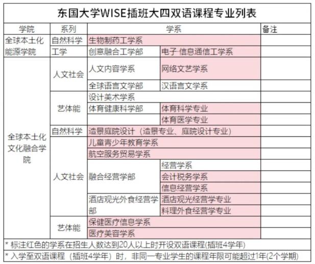 教育学、幼儿教育学、英语专业,经营专业,会计税务专业、社会福利专业,不动产专业、国际医疗经营、文献信息专业,言论影像专业,广告宣传专业,警察行政学、全球航空服务专业,全球文化信息专业